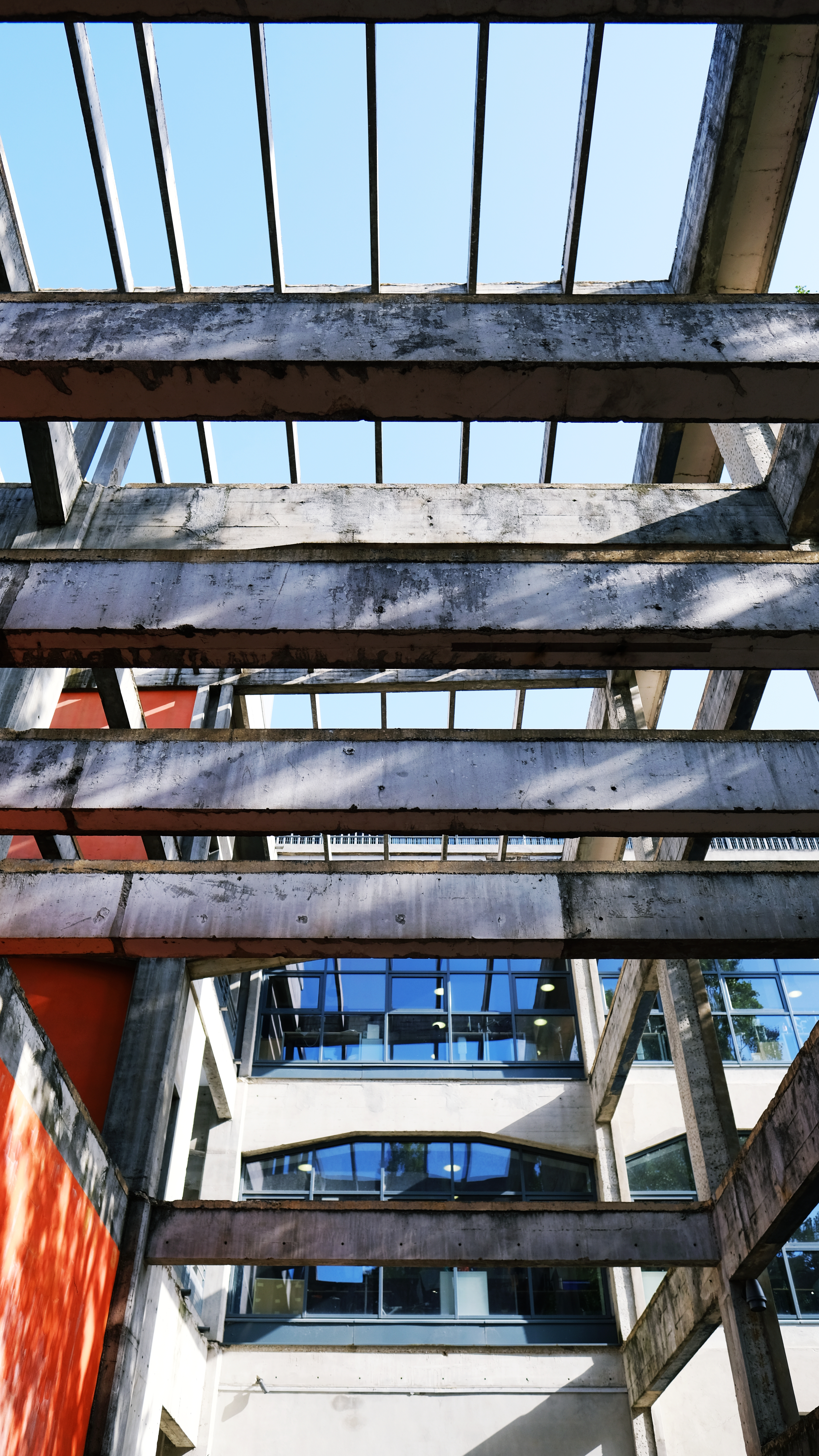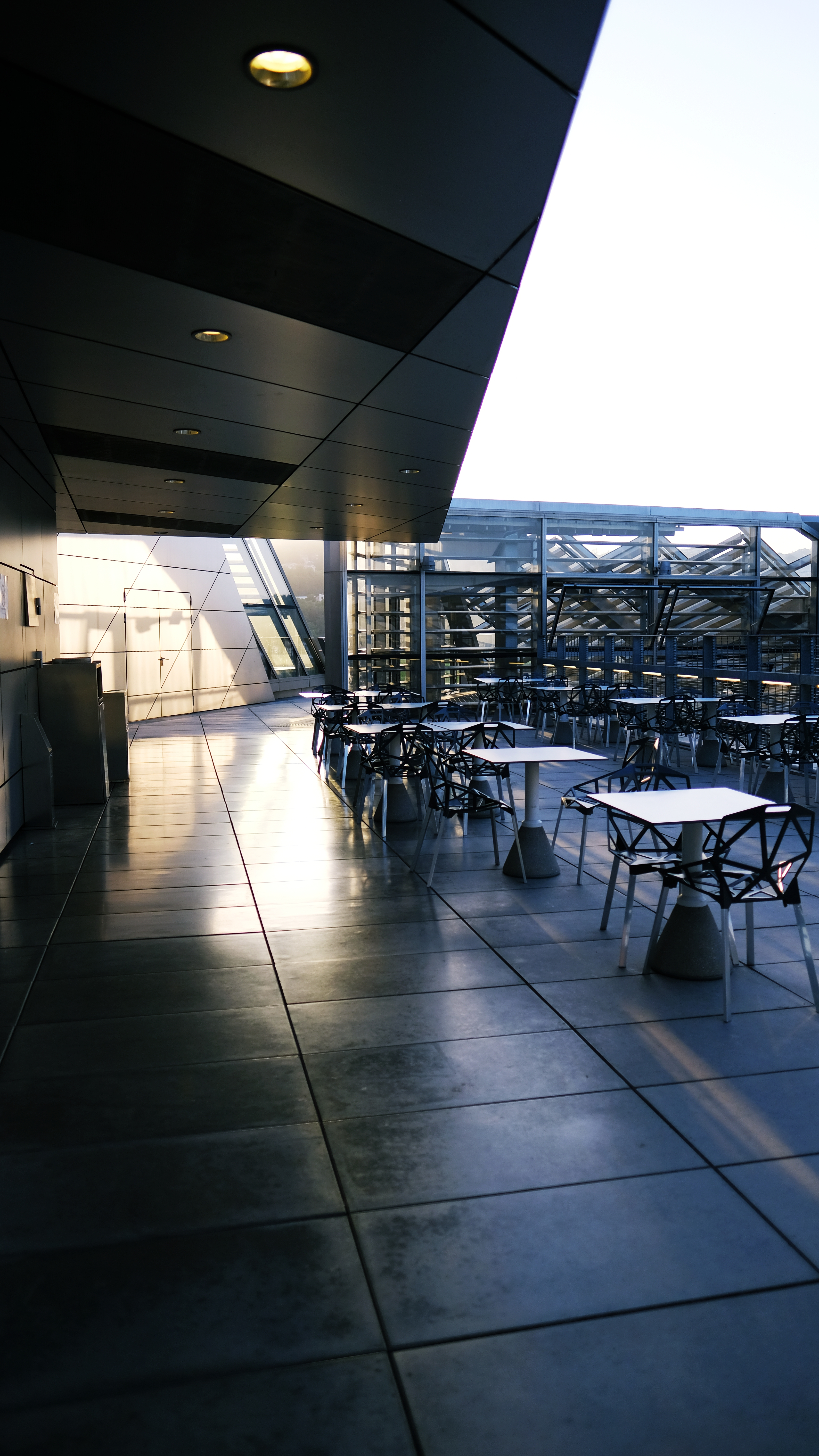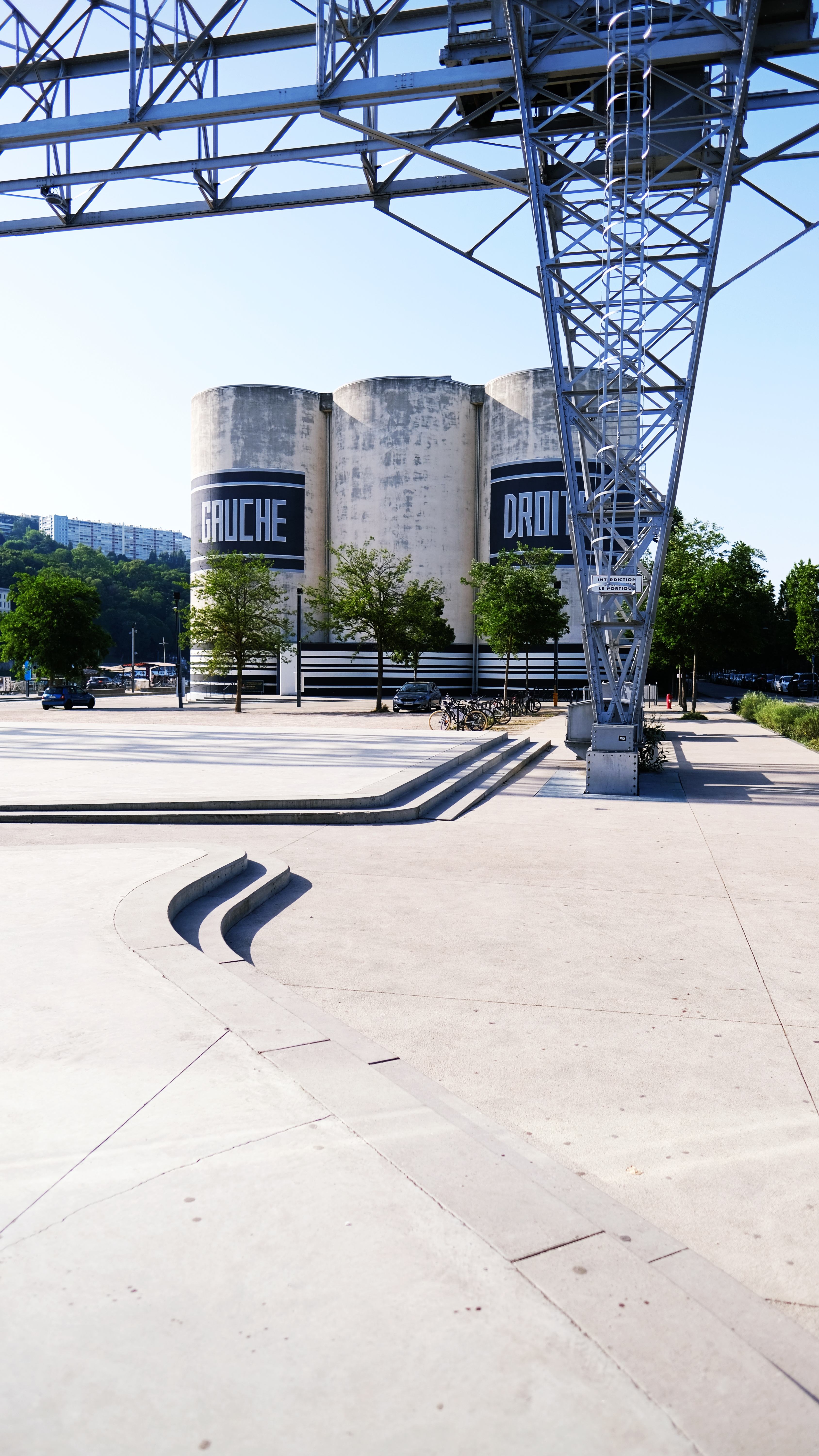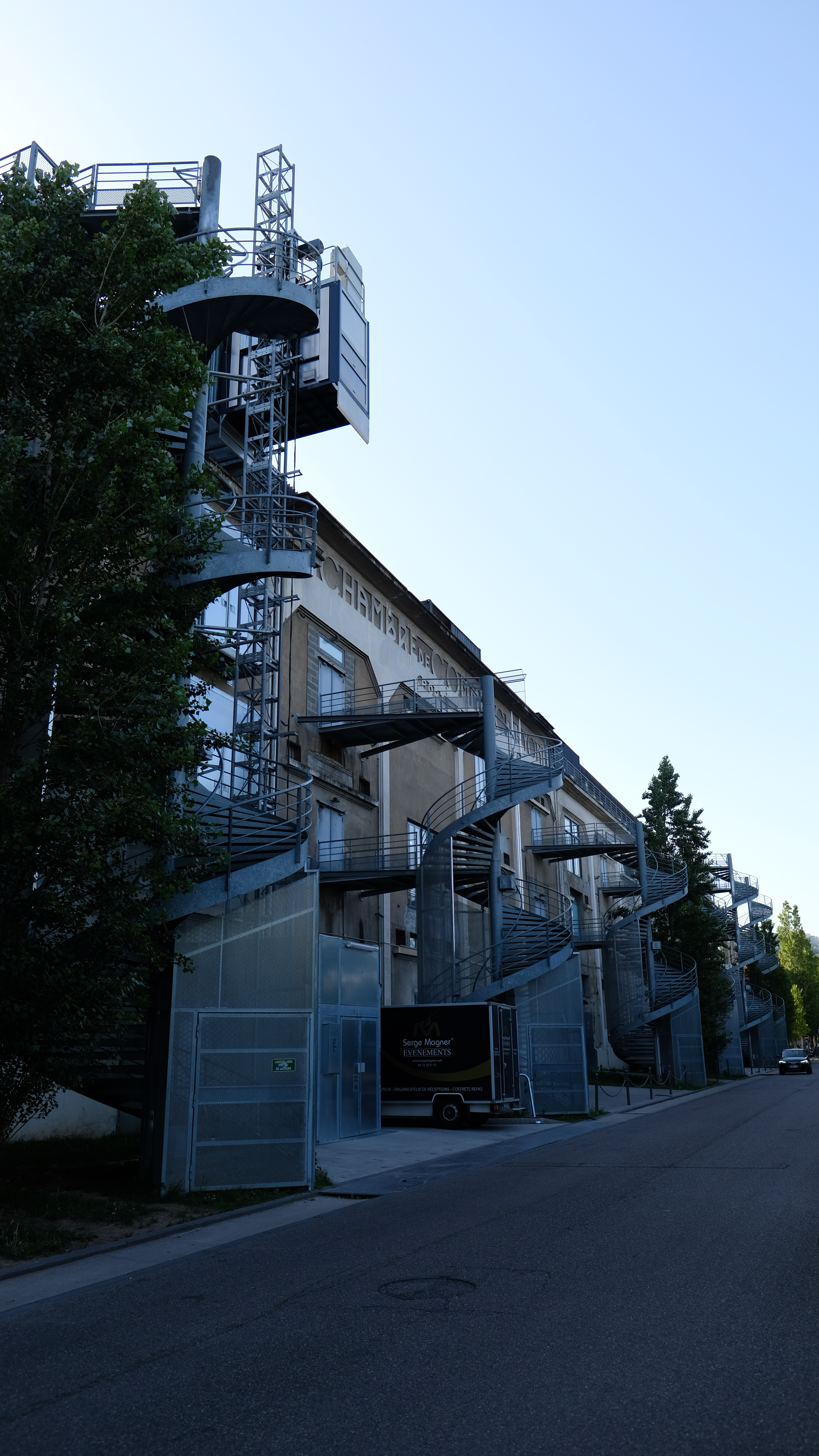 From the title, La Sucrière used to be a sugar factory warehouse, but it was abandoned in 1990. In 2003, it was renovated to become an exhibition center. Today, it is one of the main venues for the Biennale of Contemporary Art in Lyon. I have always been interested in how architects convert factories and warehouses into art and performance venues. The geometric lines and shapes of the original building create an art installation by itself. The architect added spiral staircases to play with curves and lines.